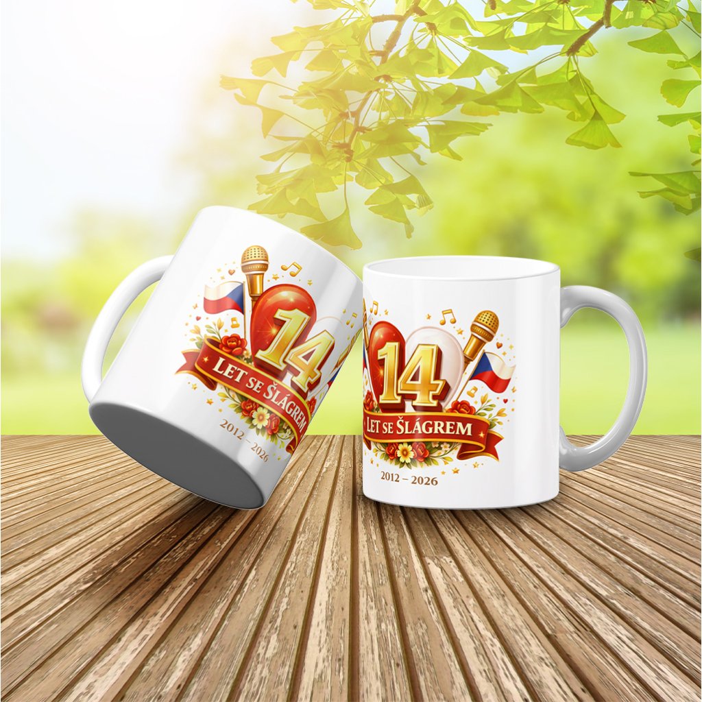 Keramický hrnek s výročním logem Šlágr TV o objemu 300 ml. Stylový doplněk pro každodenní kávu, čaj i hudební pohodu.
