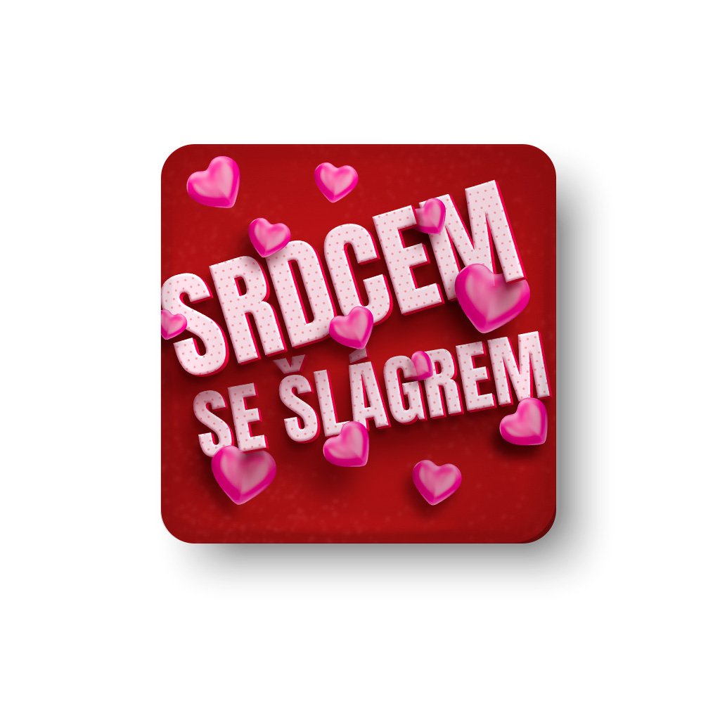 Čtvercový magnet se srdci a nápisem „Srdcem se Šlágr“ – stylový doplněk pro všechny fanoušky hudby a Šlágr TV.